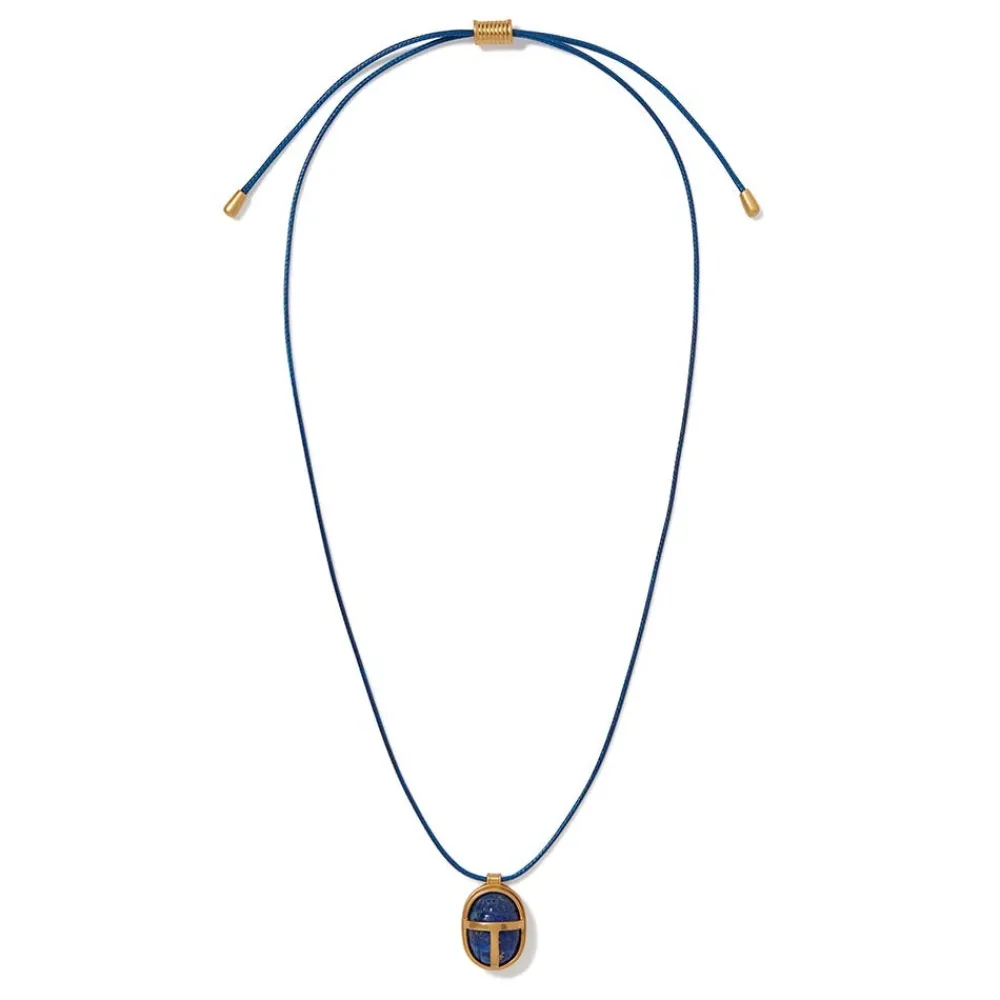 This timeless pendant necklace calls upon a remarkable gold-and-serpentinite heart scarab (ca. 1492–1473 B.C.) belonging to an Egyptian nebet per, or housemistress, by the name of Hatnefer. Heart scarabs were popular amulets in ancient Egypt; a righteous heart was essential for transcendence to the afterlife, so the Egyptians used amulets such as this one in The Met collection to ensure favorable judgment. This extraordinary heart scarab dating to the New Kingdom bears a version of a chapter from the Book of the Dead engraved on the base, in which the deceased urges her heart not to bear witness against her during her final judgment. Hatnefer’s name, however, was inserted over an erased text, indicating that the amulet wasn’t originally…See More