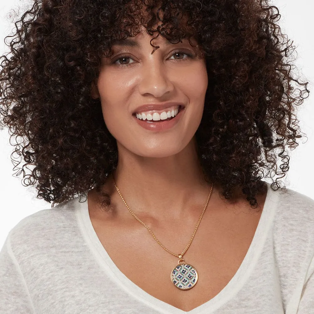This striking pendant celebrates the decoration on a painted dish (ca. 1575–90) crafted in Turkey’s renowned Iznik kilns and now in The Met collection. The pattern is a variant of a motif known asçintamani, which is Sanskrit for “auspicious jewel.” The circles and wavy stripes typically represented auspicious flaming pearls, but in the Ottoman context, they were associated with tiger stripes and leopard spots, symbols of strength and courage. The design originated in Buddhist iconography, and appears on ceramics, carpets, and textiles.